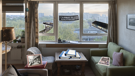 Living Room is a multimodal interactive documentary developed as part of the author's anthropological doctoral research into the demolition of a modernist public housing estate in London. The residents of the estate are threatened with the demolition of their homes as part of an urban regeneration programme. Many refuse the plan and organise against it, on the streets, in the courts of law, and in their homes. The i-doc foregrounds the experiences and activism of low-income, racialised residents who resist demolition and asks how everyday life is shaped and reshaped under structural violence, dispossession and gentrification. The i-doc allows users to navigate five thematic strands in non-linear order, from legal struggles and housing occupations to media, architecture and homemaking, reflecting the open-ended nature of residents’ refusal.